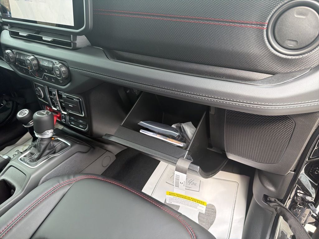 Black Clearcoat 2026 Jeep Gladiator Rubicon 4WD 8-Speed Automatic 3.6L V6 24V VVT This Jeep Gladiator comes with Warranty Forever. This EXCLUSIVE Unlimited Mileage, Unlimited Time,, This Jeep Gladiator is well equipped and includes the following features and benefits, No Deductible Powertrain Warranty allows you to buy with Confidence and Peace of Mind, *Leather Seats, Owners Manual/2 Sets of Keys, Remote Start, Short Box/Short Bed, Tow Hitch / Trailer Hitch, Apple CarPlay/Android Auto, Auto High Beam Headlamp Control, Auto-Dimming Rear-View Mirror, Automatic temperature control, Blind Spot and Cross Path Detection, Body Color 3-Piece Hard Top, Body Color Rubicon Highline Flare, Brake assist, Connected Travel and Traffic Services, Convenience Group, Freedom Panel Storage Bag, Front fog lights, Fully automatic headlights, GPS Navigation, HD Radio, Heated Front Seats, Heated Steering Wheel, Integrated Off-Road Camera, Integrated Voice Command with Bluetooth®, MOPAR All-Weather Slush Mats, MOPAR Performance Satin Black Grille, MOPAR Spray in Bedliner, ParkSense Rear Park Assist System, Power Dome Dual Vented Hood, Quick Order Package 24E Shadow Ops, Radio: Uconnect 5 Navigation with 12.3 Display, Rear Sliding Window, Rear Window Defroster, Remote Start System, Safety Group, Shadow Ops Fender Decal, Shadow Ops Package, Shadow Ops Side Bed Decal, Shadow Ops Tailgate Decal, Steel Front Bumper, Steel Power Dome Hood Package, Technology Group, Universal Garage Door Opener, Warn Electric Front Winch.
